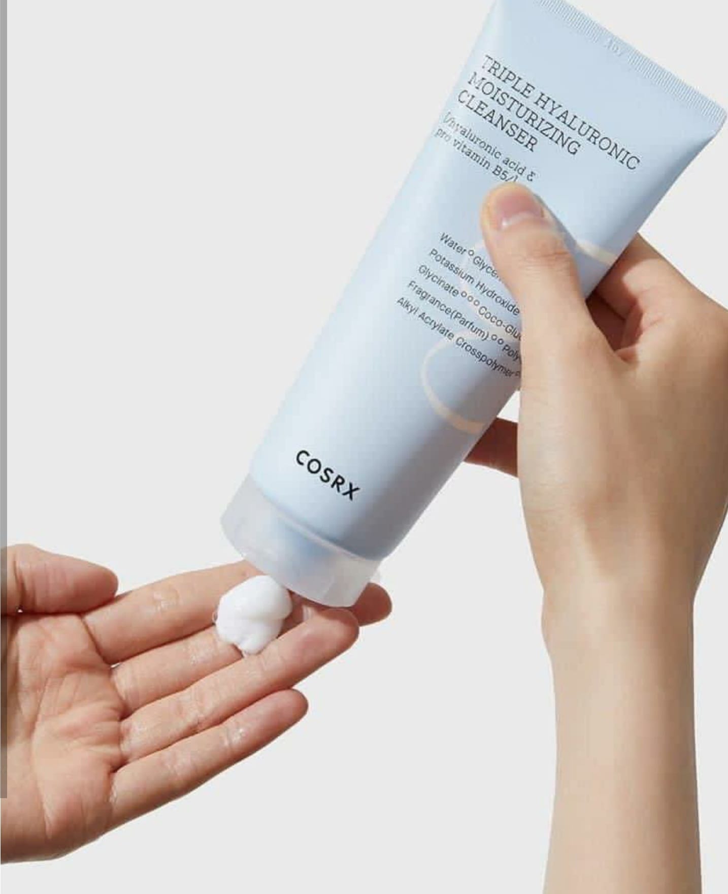منظف كوسركـس هيدريوم تريبل هيالورونيـك المرطب هو منظف رغوي غني مدعم بحمض الهيالورونيـك الثلاثي لتوفير الرطوبة مع تنظيف البشرة بالكامل من الشوائب. توفر المواد الخافضة للتوتر السطحي المشتق من جوز الهند تنظيفًا عميقًا يذيب الشوائب بلطف بما في ذلك المكياج، مما يجعل البشرة تبدو نظيفة ومنتعشة للغاية. حمض الهيالورونيـك عالي الجزيئات يخلق حاجزًا واقيًا غير مرئي بينما ينقع حمض الهيالورونيـك الجزيئي المنخفض في البشرة مما يزيد من مرونته، مما يبقيه رطبًا وناعمًا حتى بعد التنظيف.