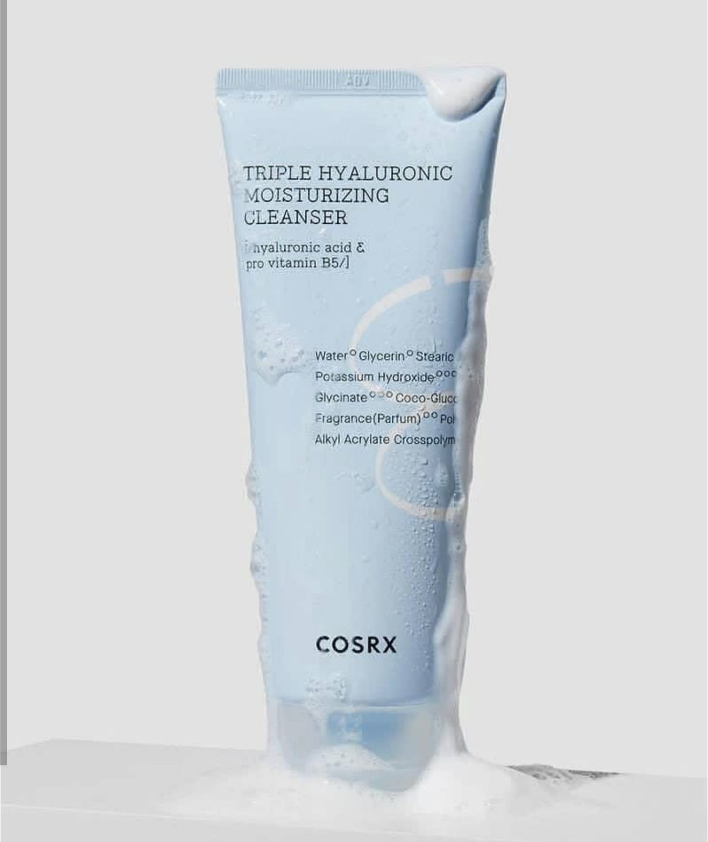 منظف كوسركـس هيدريوم تريبل هيالورونيـك المرطب هو منظف رغوي غني مدعم بحمض الهيالورونيـك الثلاثي لتوفير الرطوبة مع تنظيف البشرة بالكامل من الشوائب. توفر المواد الخافضة للتوتر السطحي المشتق من جوز الهند تنظيفًا عميقًا يذيب الشوائب بلطف بما في ذلك المكياج، مما يجعل البشرة تبدو نظيفة ومنتعشة للغاية